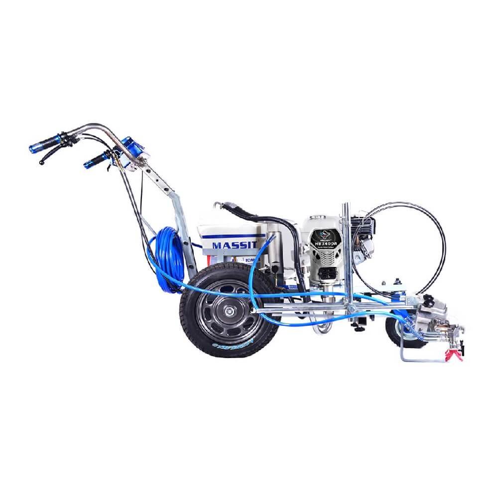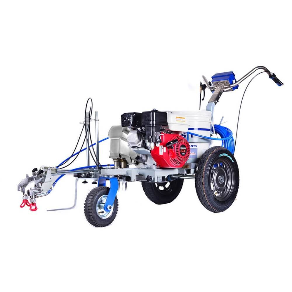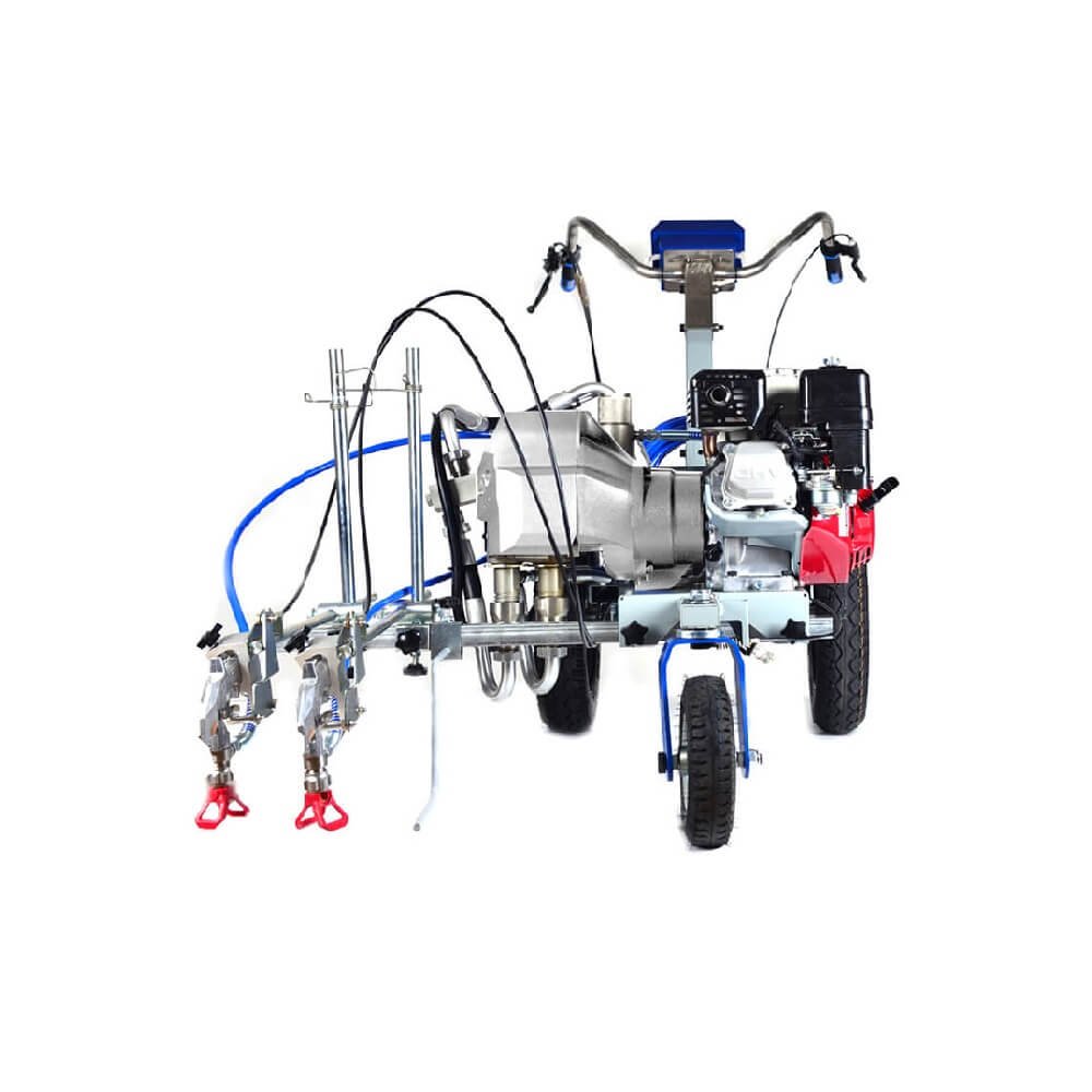 EL Pintarrayas 02 pistolas HB-3400-2 es el equipo perfecto para marcar líneas precisas y duraderas en estacionamientos, pistas y carreteras y mucho más. Con su potente motor Honda original a gasolina, este equipo airless garantiza un trabajo rápido y eficiente.