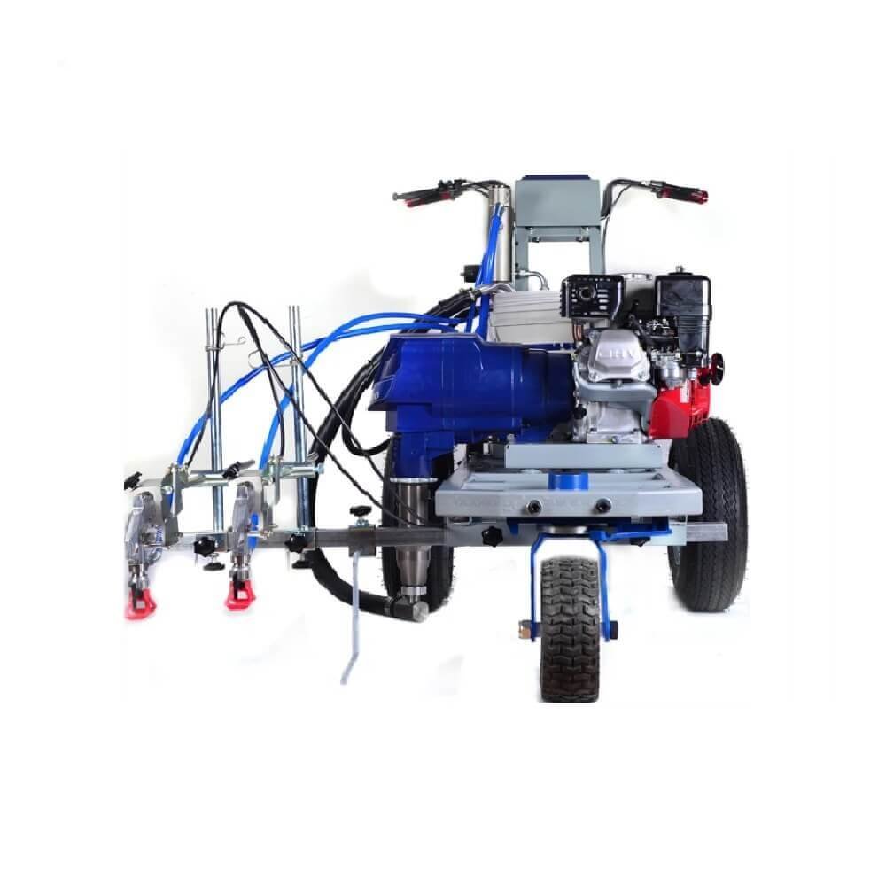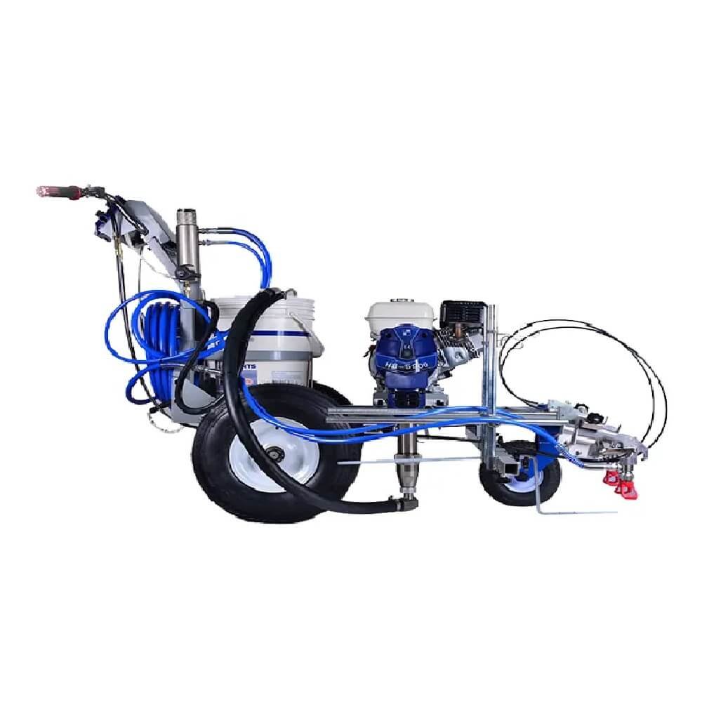 EL Pintarrayas 02 pistolas HB-5900 es el equipo perfecto para marcar líneas precisas y duraderas, ideal para proyectos grandes. Puede ser utilizado en estacionamientos, pistas y carreteras y mucho más. Con su potente motor Honda original a gasolina, este equipo con tecnología airless garantiza un trabajo rápido y eficiente.