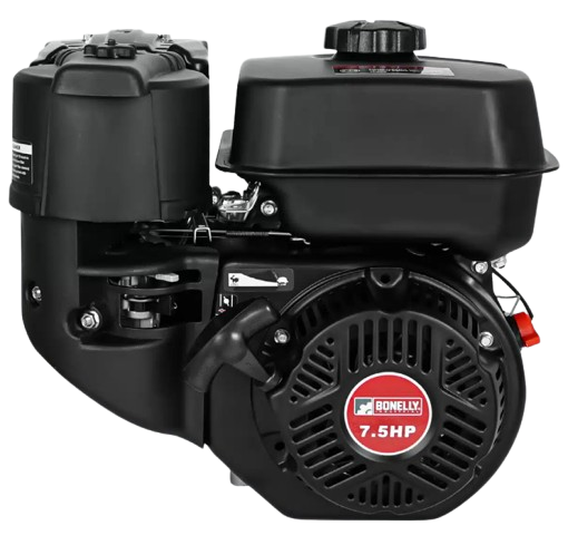 Motor 6.5 HP Arranque retráctil, ventilación por aire forzado, desplazamiento de 212 cc y tanque de 3.6 litros. Certificado internacionalmente para máxima potencia y durabilidad